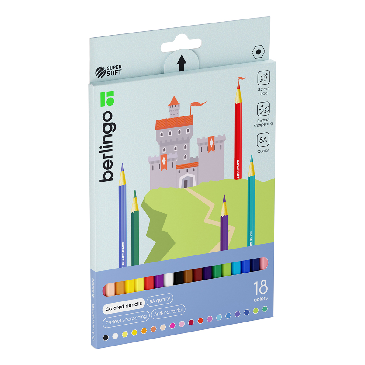 Карандаши цветные Berlingo "SuperSoft. Замки", 18цв., заточен., картон, европодвес
