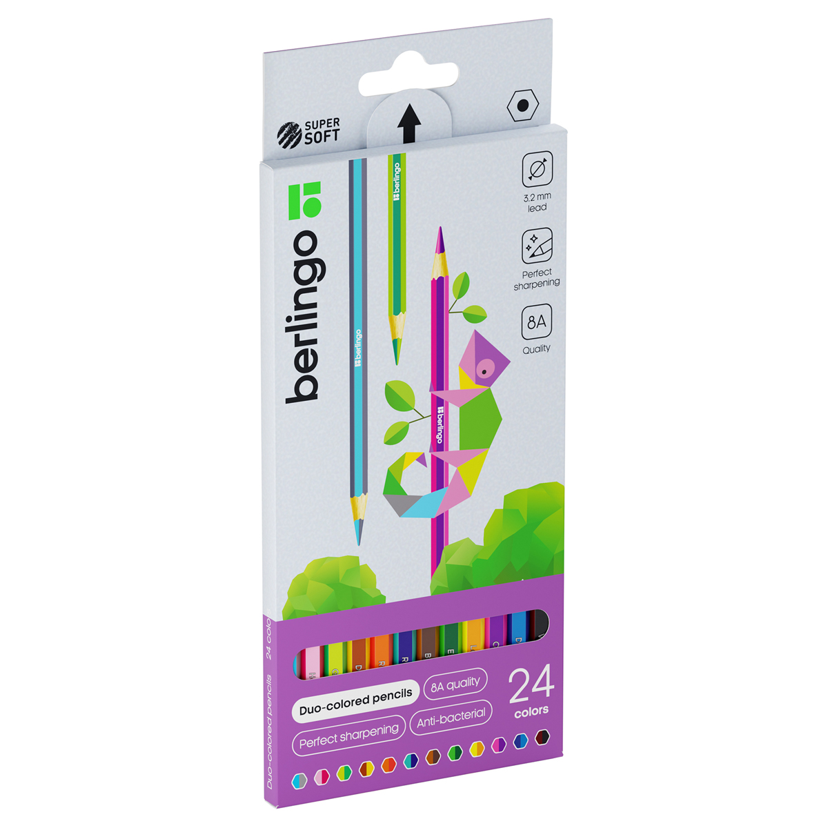 Карандаши с двухцветным грифелем Berlingo "SuperSoft. 2in1", 12шт., 24цв., картон., европодвес