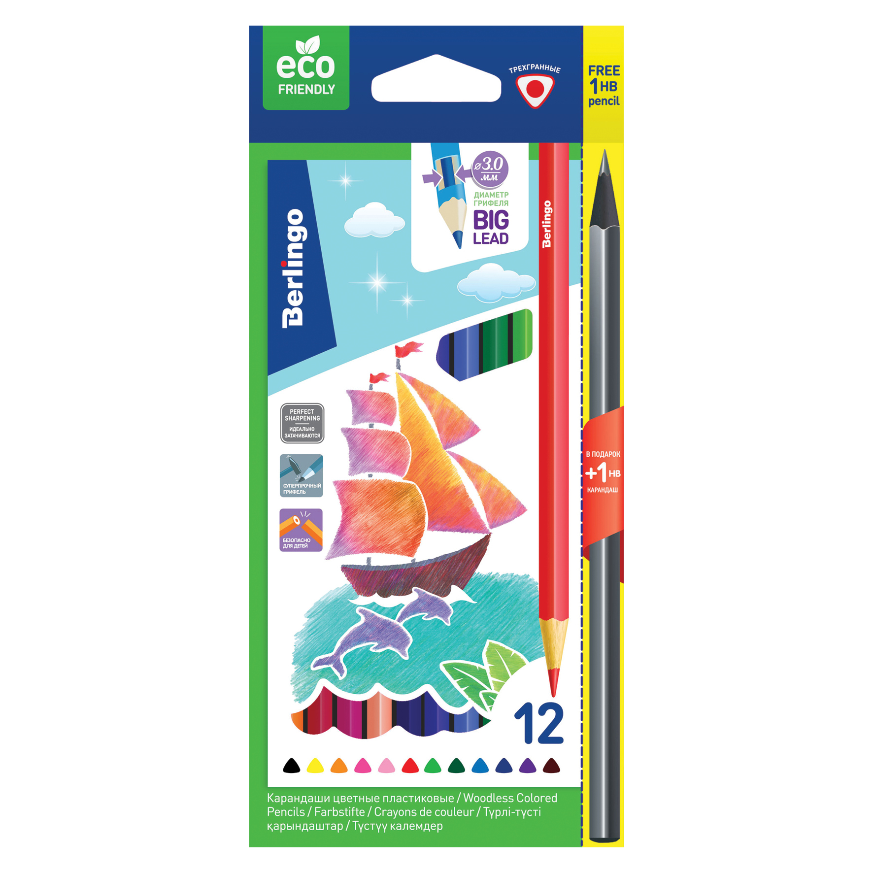 Карандаши цветные пластиковые Berlingo "Корабли", 12цв.+1 ч/г HB, заточен., картон, европодвес