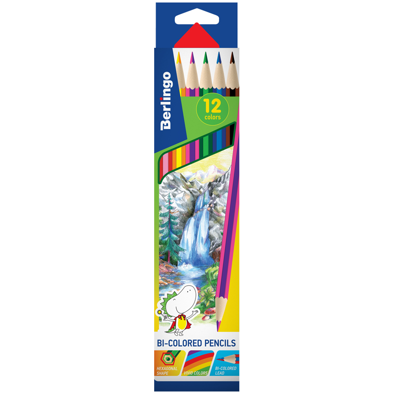 Карандаши с двухцветным грифелем Berlingo "Водопад", 06шт., 12цв., картон., европодвес