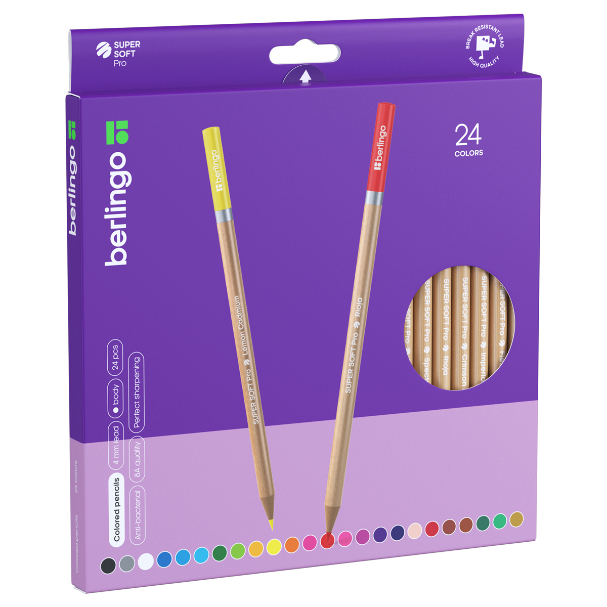 Карандаши цветные Berlingo "SuperSoft. Pro" 24цв., круглые, заточен., картон, европодвес