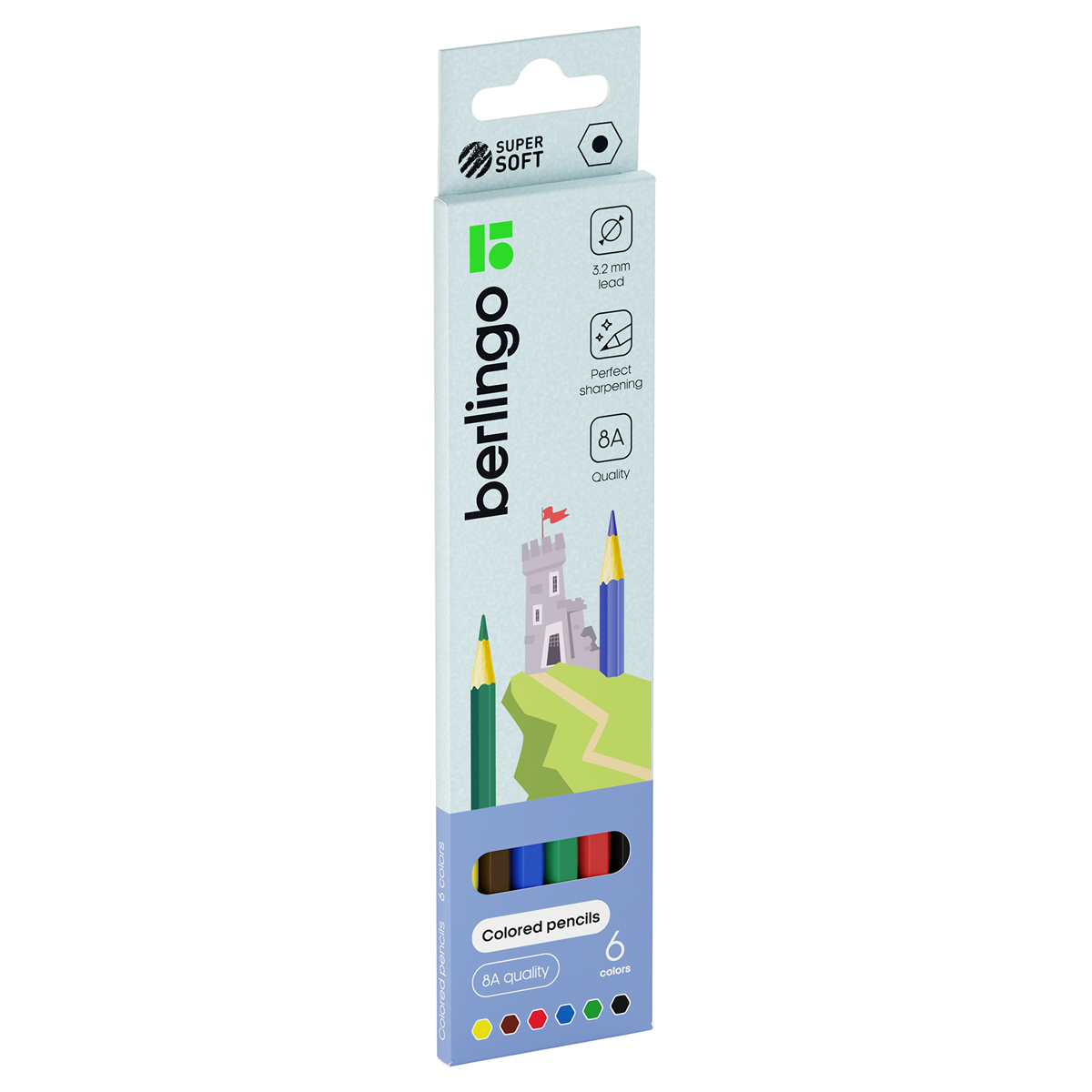 Карандаши цветные Berlingo "SuperSoft. Замки", 06цв., заточен., картон, европодвес