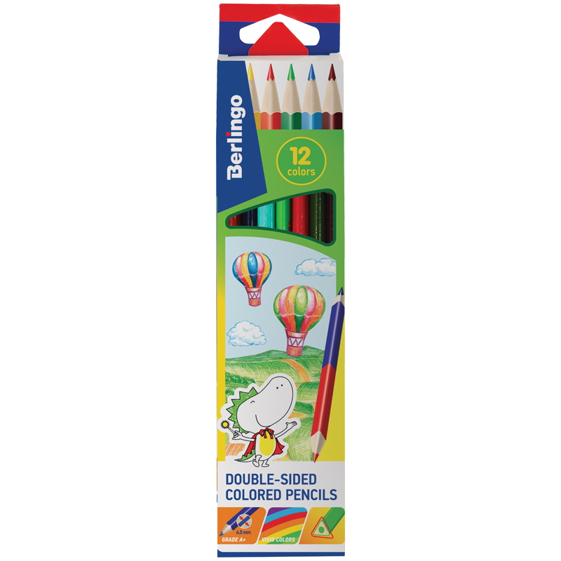Карандаши цветные двусторонние Berlingo "Воздушные шары" 12цв., 06шт., трехгр., заточ.,картон,европ.