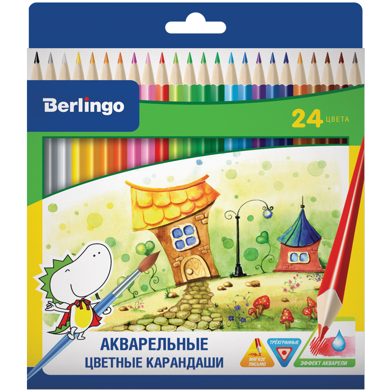 Карандаши акварельные Berlingo "Сказочный город", 24цв., заточен., картон, европодвес