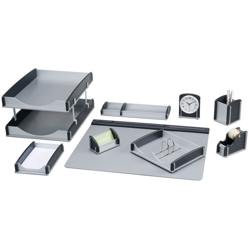 Набор настольный Bestar "Kratos" 9 предметов, двойной лоток, алюминий, черное дерево