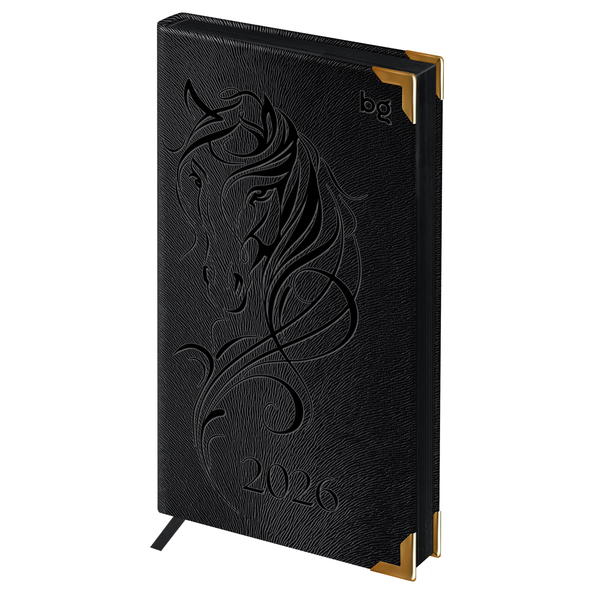 Еженедельник датированный 2026г., 90*165, 64л., твердый переплет, кожзам, BG "Horse. Shade", черный, цветной срез