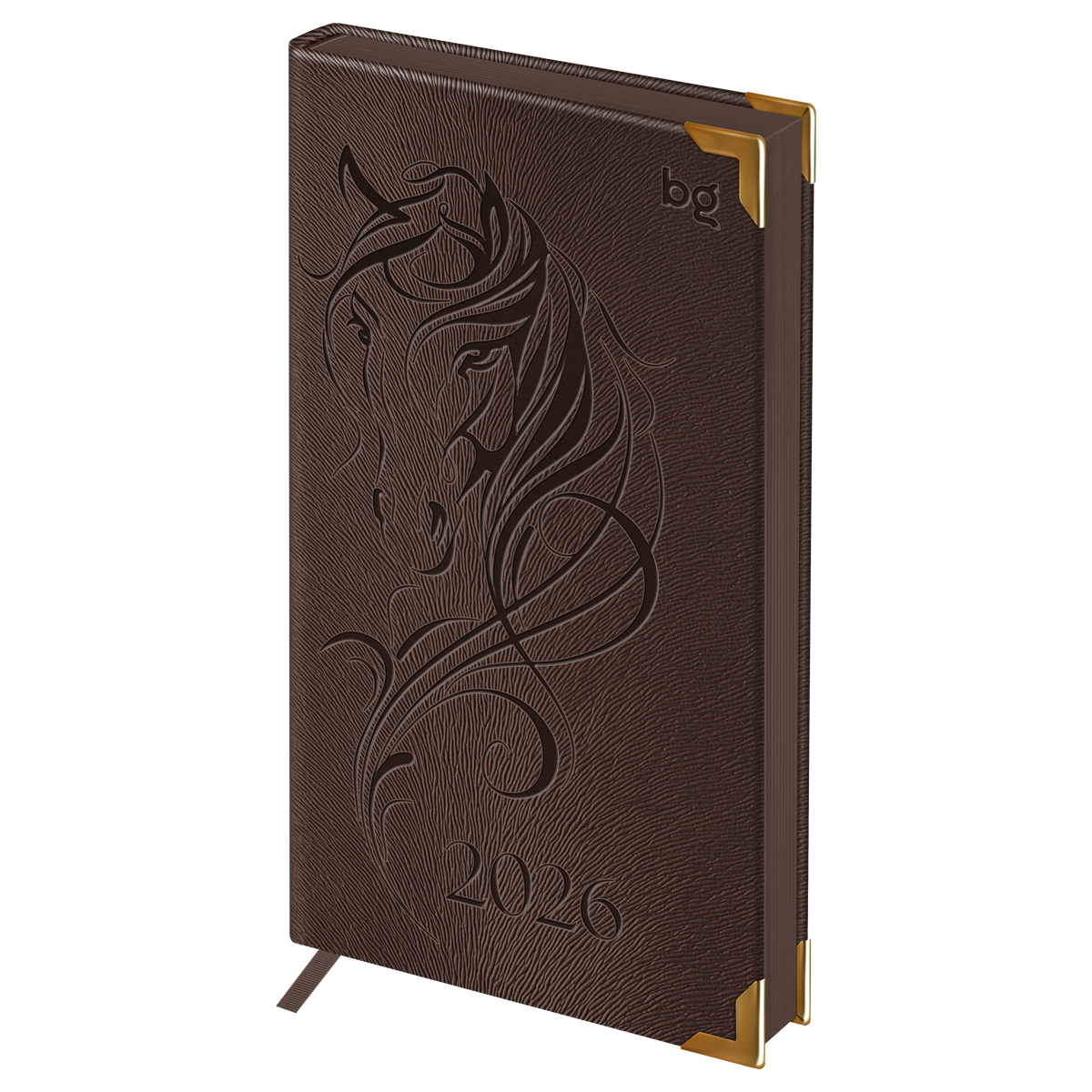 Еженедельник датированный 2026г., 90*165, 64л., твердый переплет, кожзам, BG "Horse. Saddle", коричневый, цветной срез