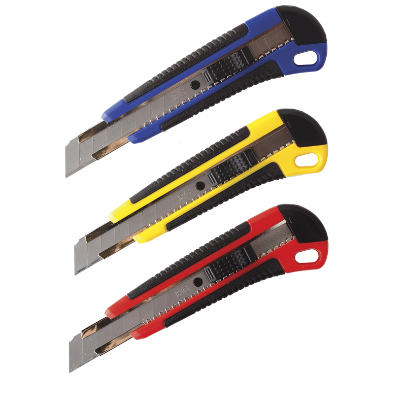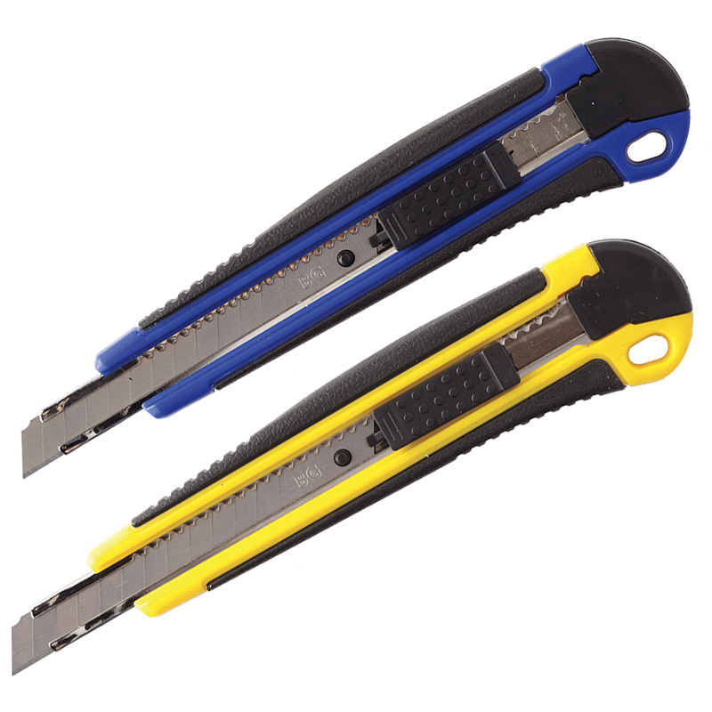 Нож канцелярский 9мм BG "Soft G", auto-lock, металл. направл., 2 зап. лезвия, европодвес
