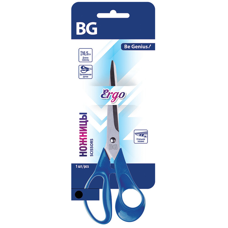Ножницы BG "Ergo" 16,5см, синие, стальное лезвие, европодвес
