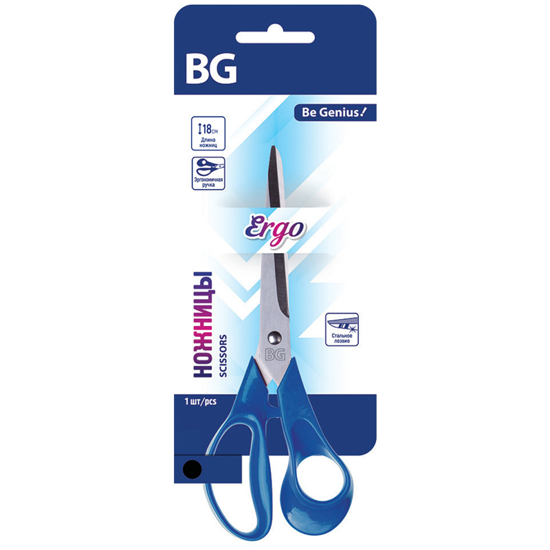 Ножницы BG "Ergo" 18см, синиe, стальное лезвие, европодвес
