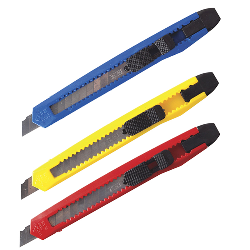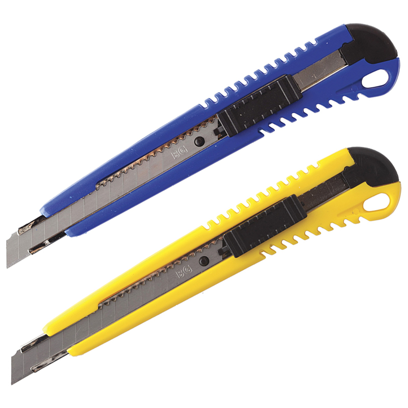 Нож канцелярский 9мм BG "Simple", рush-lock, пластиковый корпус, ассорти, европодвес