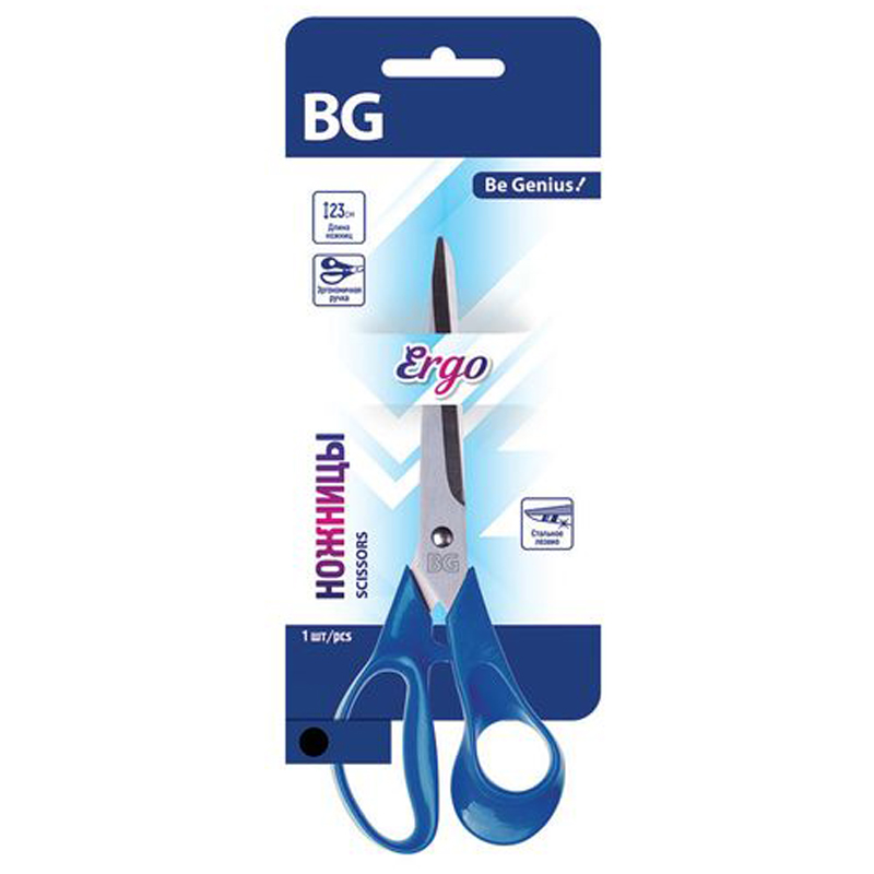 Ножницы BG "Ergo" 23см, синие, стальное лезвие, европодвес