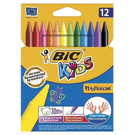 Мелки восковые " BiC " Kids Plastidecor 12цв, картонная упаковка, европодвес