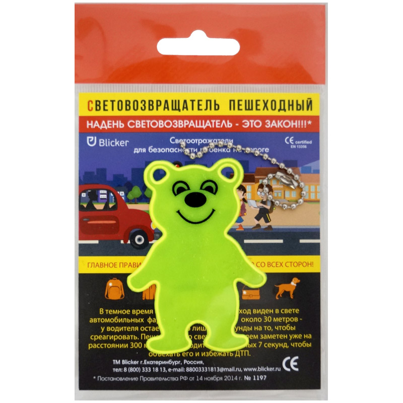 Световозвращающая подвеска Blicker "Мишка ", салатовый