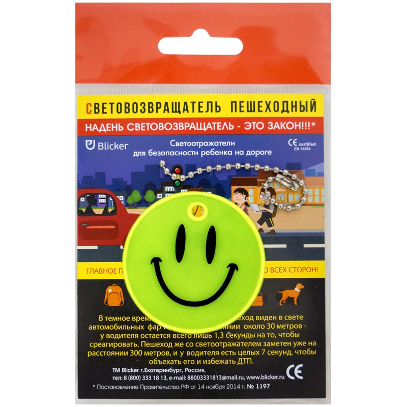 Световозвращающая подвеска Blicker "Смайлик ", салатовый