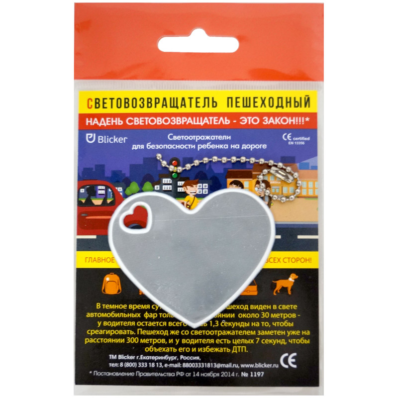 Световозвращающая подвеска Blicker "Сердце ", белый