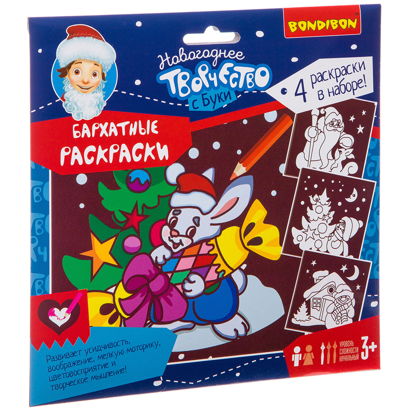 Набор для творчества Bondibon Новогодние бархатные раскраски, (бордовый фон)