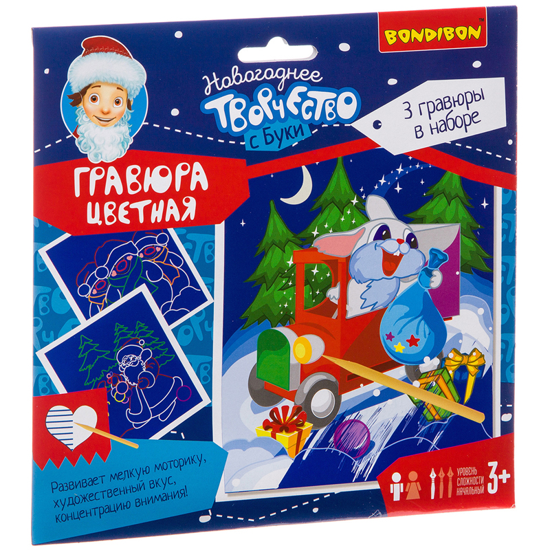 Набор для творчества Bondibon Новогодняя цветная гравюра, (для мальчика)