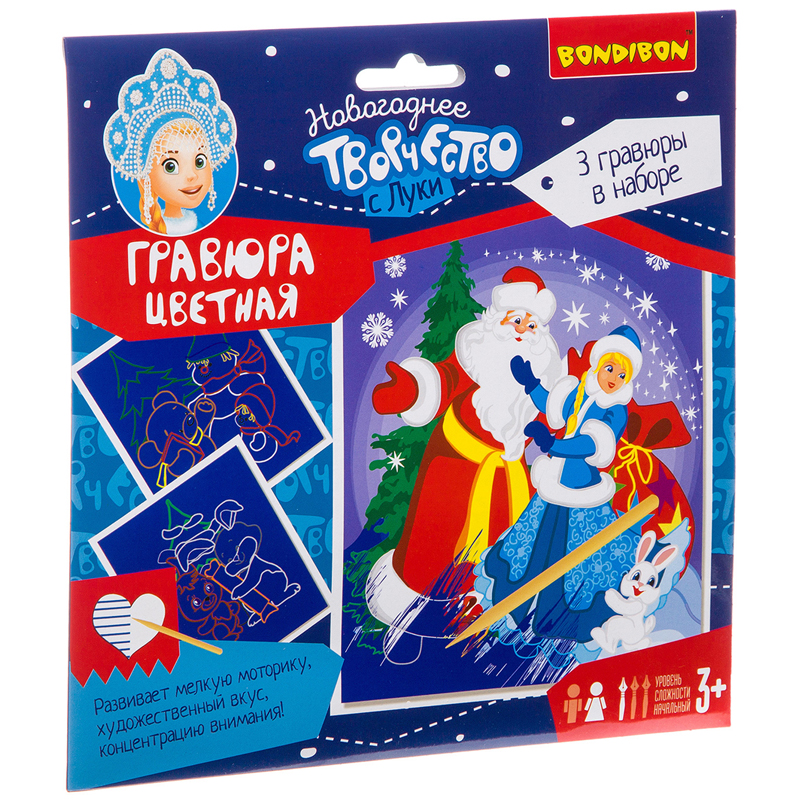 Набор для творчества Bondibon Новогодняя цветная гравюра, (для девочки)