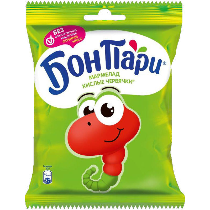 Жевательный мармелад БонПари, Кислые червячки, ассорти, 75г