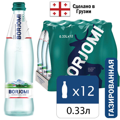 Вода ГАЗИРОВАННАЯ минеральная BORJOMI 0,33 л, стеклянная бутылка