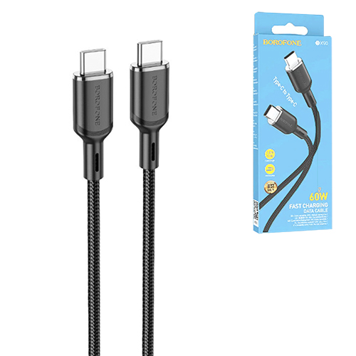 Кабель сетевой Type-C - Type-C " Borofone " BX100 Advantage чёрный, круглый, 1м, 3,0А, QC3.0, PD60W, ткань