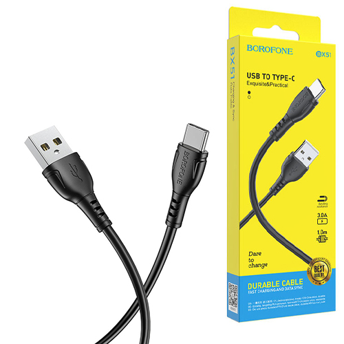 Кабель сетевой USB - Type-C " Borofone " BX51 Triumph чёрный, круглый, 1м, 3,0А, силикон