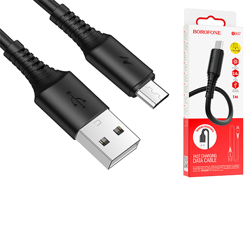 Кабель сетевой USB - micro USB " Borofone " BX47 Coolway чёрный, круглый, 1м, 2,4А, силикон