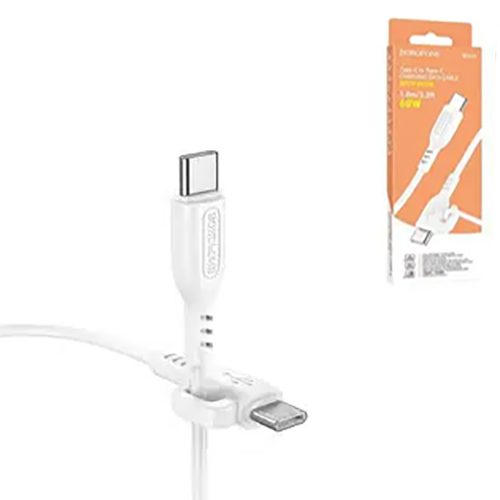 Кабель сетевой Type-C - Type-C " Borofone " BX91 белый, круглый, 1м, 3,0А, PD60W, силикон