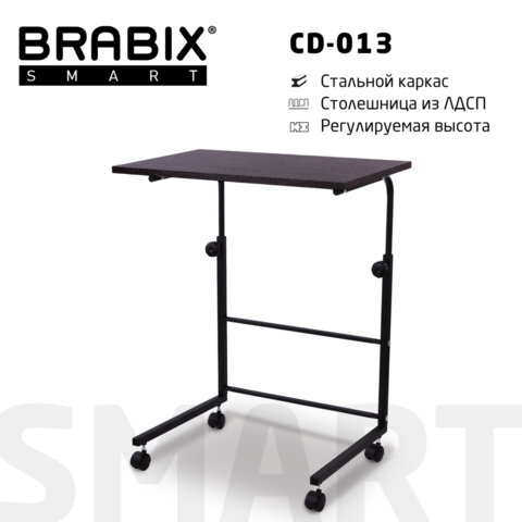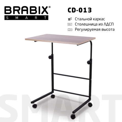 Стол BRABIX "Smart CD-013", 600х420х745-860 мм, ЛОФТ, регулируемый, колеса, металл/ЛДСП дуб, каркас черный, 641882