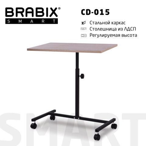 Стол BRABIX "Smart CD-015", 600х380х670-880 мм, ЛОФТ, регулируемый, колеса, металл/ЛДСП дуб, каркас черный, 641886