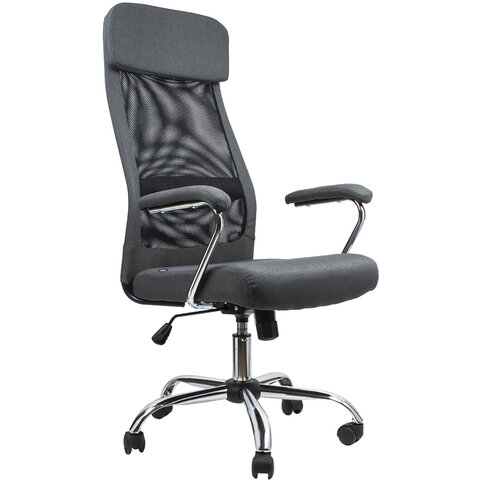 Кресло офисное BRABIX "Flight EX-540", хром, ткань, сетка, серое, 531848