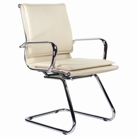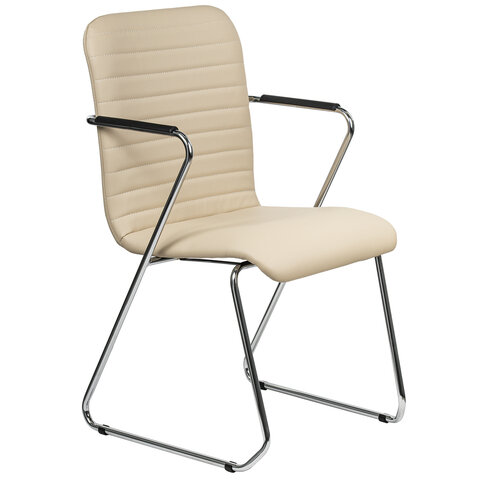 Кресло для приемных и переговорных BRABIX "Visit CF-101", хром, экокожа, бежевое, 532560