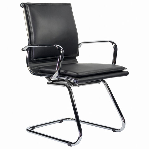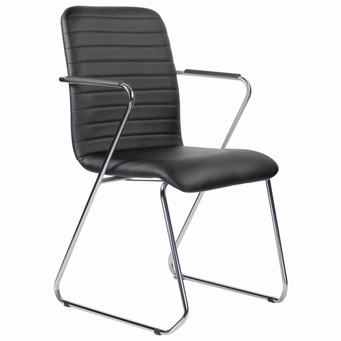 Кресло для приемных и переговорных BRABIX "Visit CF-101", хром, экокожа, черное, 532559