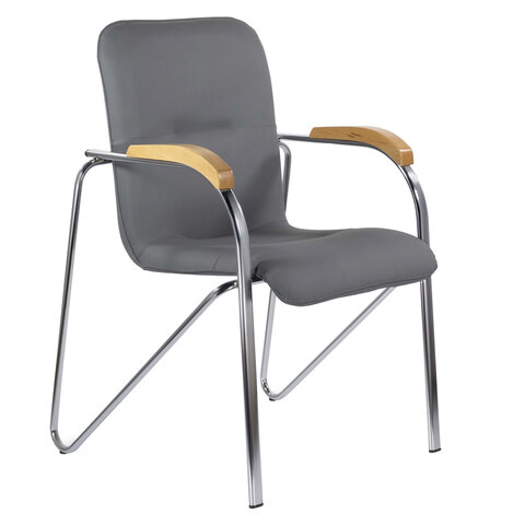 Кресло BRABIX "Samba CF-103", хром каркас, накладки "бук", кожзам серый, собрано, 532758