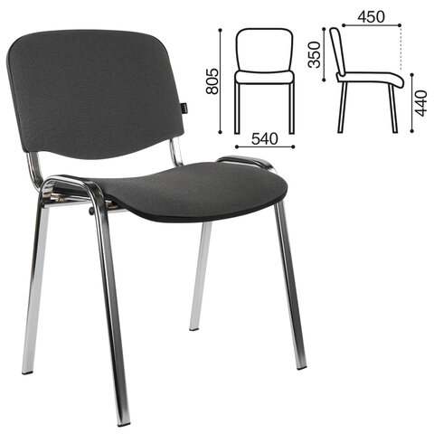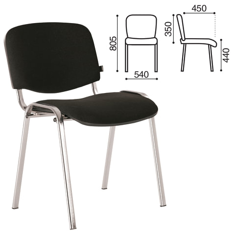 Стул для персонала и посетителей BRABIX "Iso CF-001", хромированный каркас, ткань черная, 531419