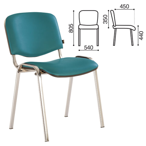 Стул для персонала и посетителей BRABIX "Iso CF-001", хромированный каркас, кожзам бирюзовый, 531427