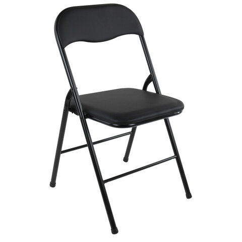 Стул складной для дома и офиса BRABIX "Golf CF-007", черный каркас, кожзам черный, 531565