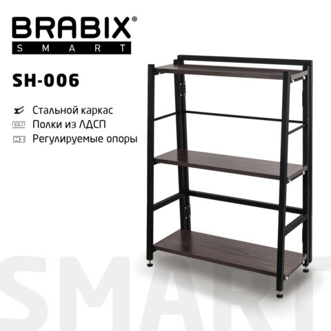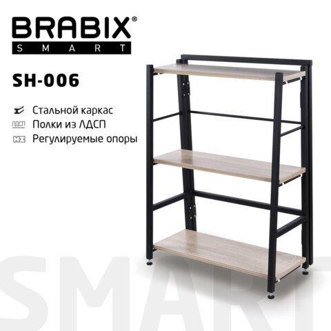 Стеллаж BRABIX "Smart SH-006", 605х295х790 мм, ЛОФТ, трапеция, складной, металл/ЛДСП дуб, каркас черный, 641870