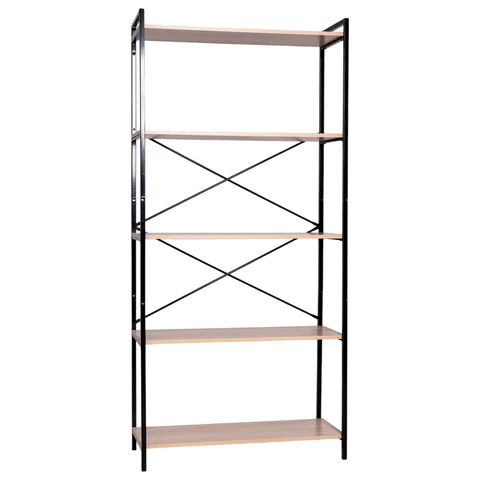 Стеллаж на металлокаркасе BRABIX "LOFT SH-003", 600х350х1500 мм, 5 полок, цвет дуб натуральный, 641236
