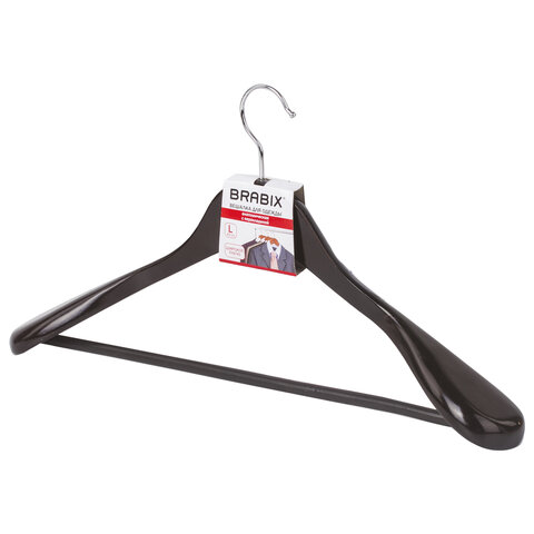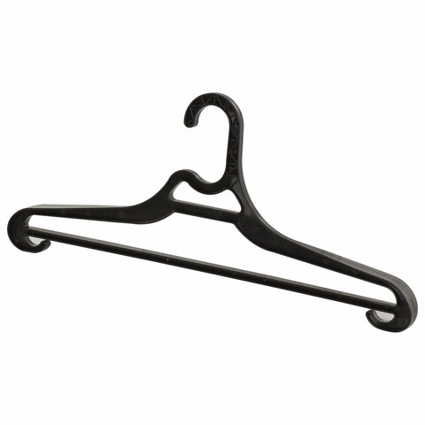 Вешалка-плечики р.52-54, пластик, плоская, перекладина, крючки для бретелей, черная, BRABIX, 601655