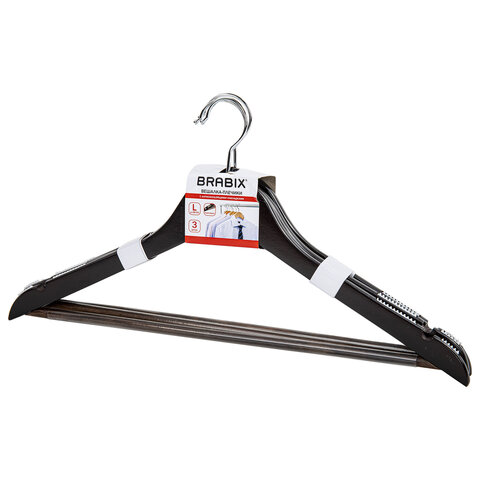 Вешалки-плечики с антискользящими накладками, КОМПЛЕКТ 3 штуки, размер 48-50, дерево, BRABIX, 607476