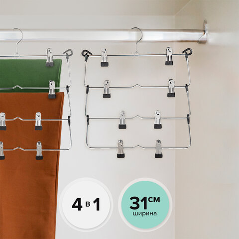 Вешалка-плечики качели, 4 секции, металлическая, с клипсами для юбок и брюк, BRABIX, 607472