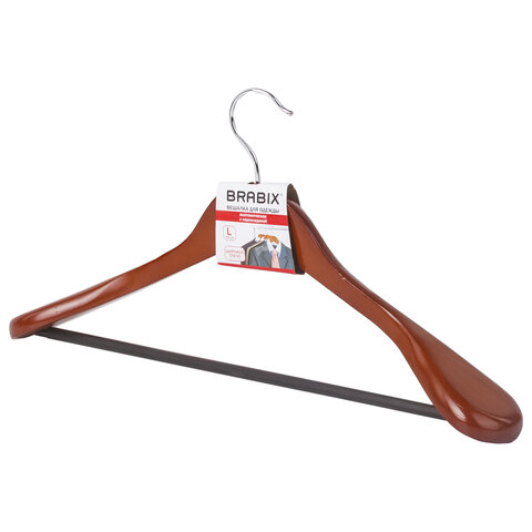 Вешалка-плечики, размер 48-50, деревянная, анатомическая, перекладина, цвет шоколад, BRABIX "Люкс", 601165