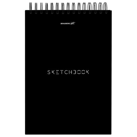 Скетчбук, белая бумага 100г/м2 140х201мм 60л, гребень, жёсткая подложка, BRAUBERG ART DEBUT, Minimal черный, 116900