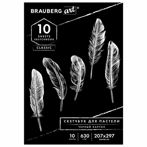 Альбом для пастели, картон ЧЕРНЫЙ тонированный 630 г/м2, 207x297 мм, 10 л., BRAUBERG ART CLASSIC, 105918