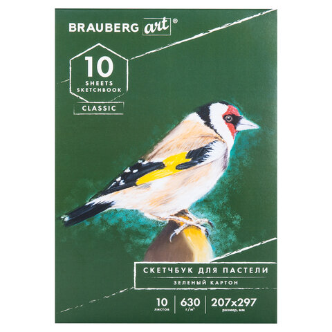 Альбом для пастели, картон ЗЕЛЕНЫЙ тонированный 630 г/м2, 207x297 мм, 10 л., BRAUBERG ART CLASSIC, 105920