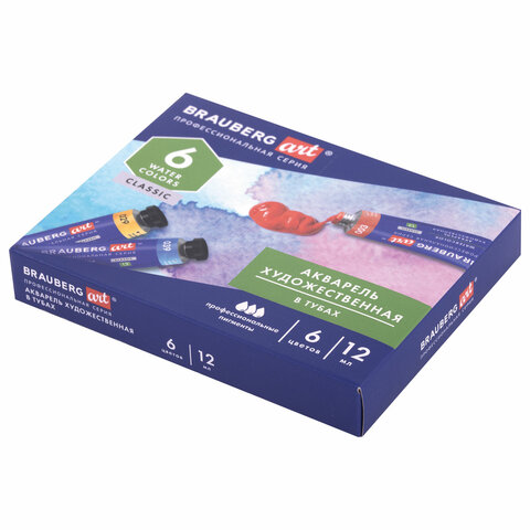 Акварель художественная в тубах НАБОР 6 цветов по 12 мл, BRAUBERG ART CLASSIC, 191763