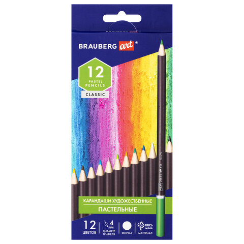Карандаши художественные цветные пастельные BRAUBERG ART CLASSIC, 12 цветов, грифель 4 мм, 181535