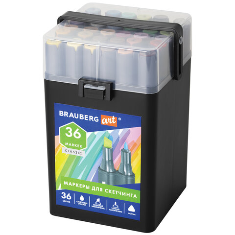 Маркеры для скетчинга двусторонние BRAUBERG ART CLASSIC, НАБОР 36 шт., базовые цвета, кейс, 152145
